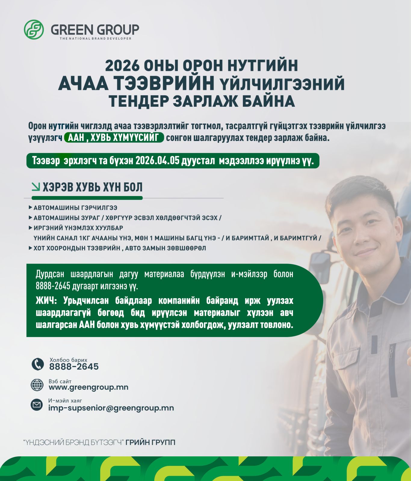 Тээвэр эрхлэгч та бүхэн 2026.04.05 дуустал мэдээллээ ирүүлнэ үү.